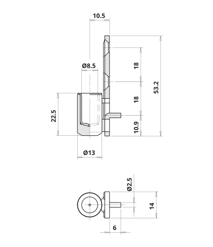 P38 Ø13 | Parte inferiore con boccola in nylon